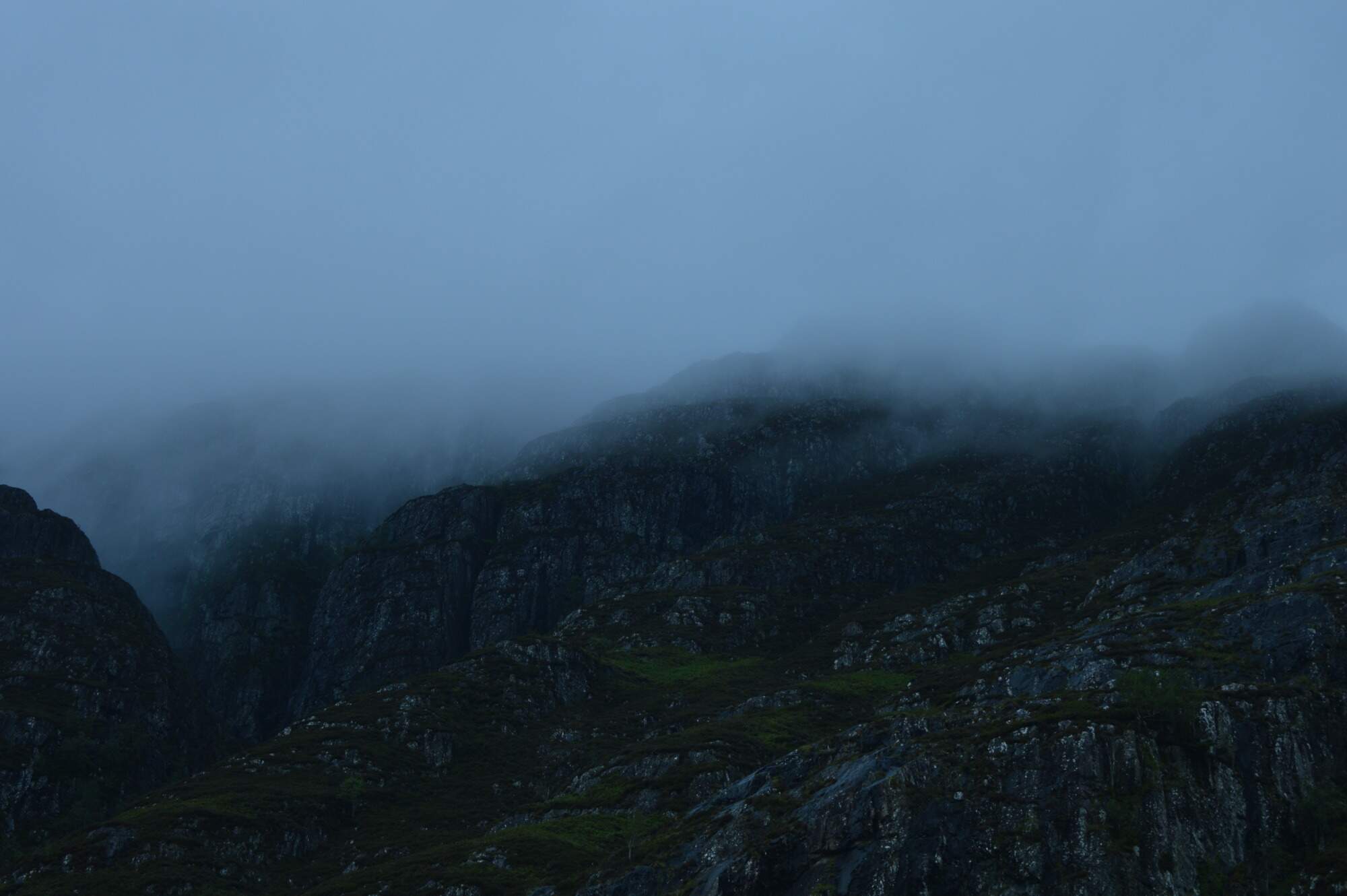 Mraky, které jsou tak nízko, že je probodávají kopce.