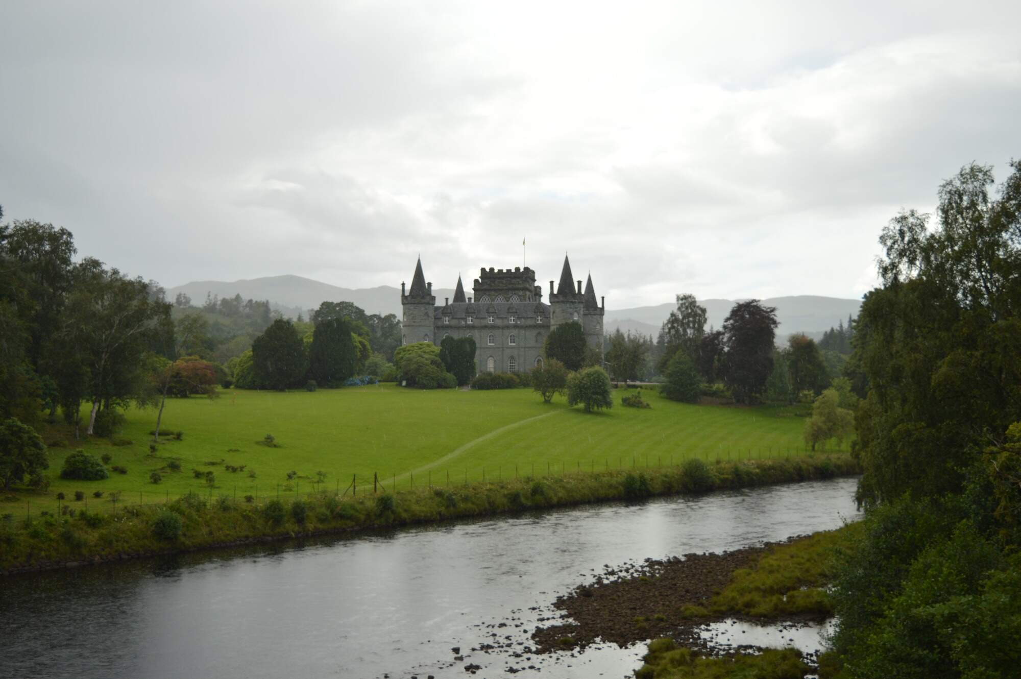 Nakonec jsme dospěli do Inveraray, kde jsme si prohlídli zámeckou zahradu, já si v suvenýrech koupila krystal a zmokli jsme. Inveraray je pěkné městečko. Tedy, ono je to ještě menší, než to naše, ale měli jednu velkou a jednu malousámošku, dvě benzínky, spoustu obchůdků se suvenýry, vězení a duhu.