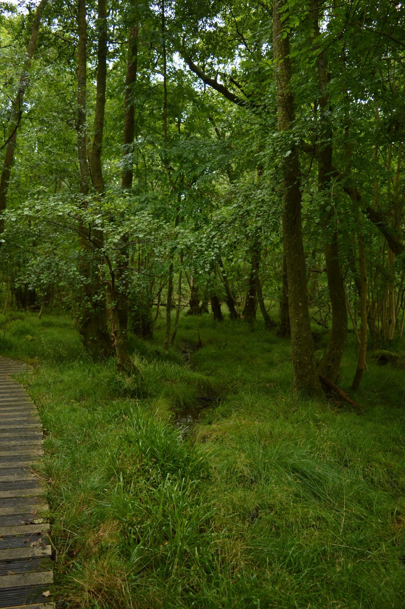 V pondělí jsme se vydali na kratší výlet k místu, kde se stékali malé říčky do jedné větší, která poté tekla do našeho moře. Nejprve jsme špatně zatočili a šli chvíli podél říčky, ale tam cesta končila. Spooousta mechu a jetele. A kapradí. Po správné cestě jsem začala testovat pláštěnku.