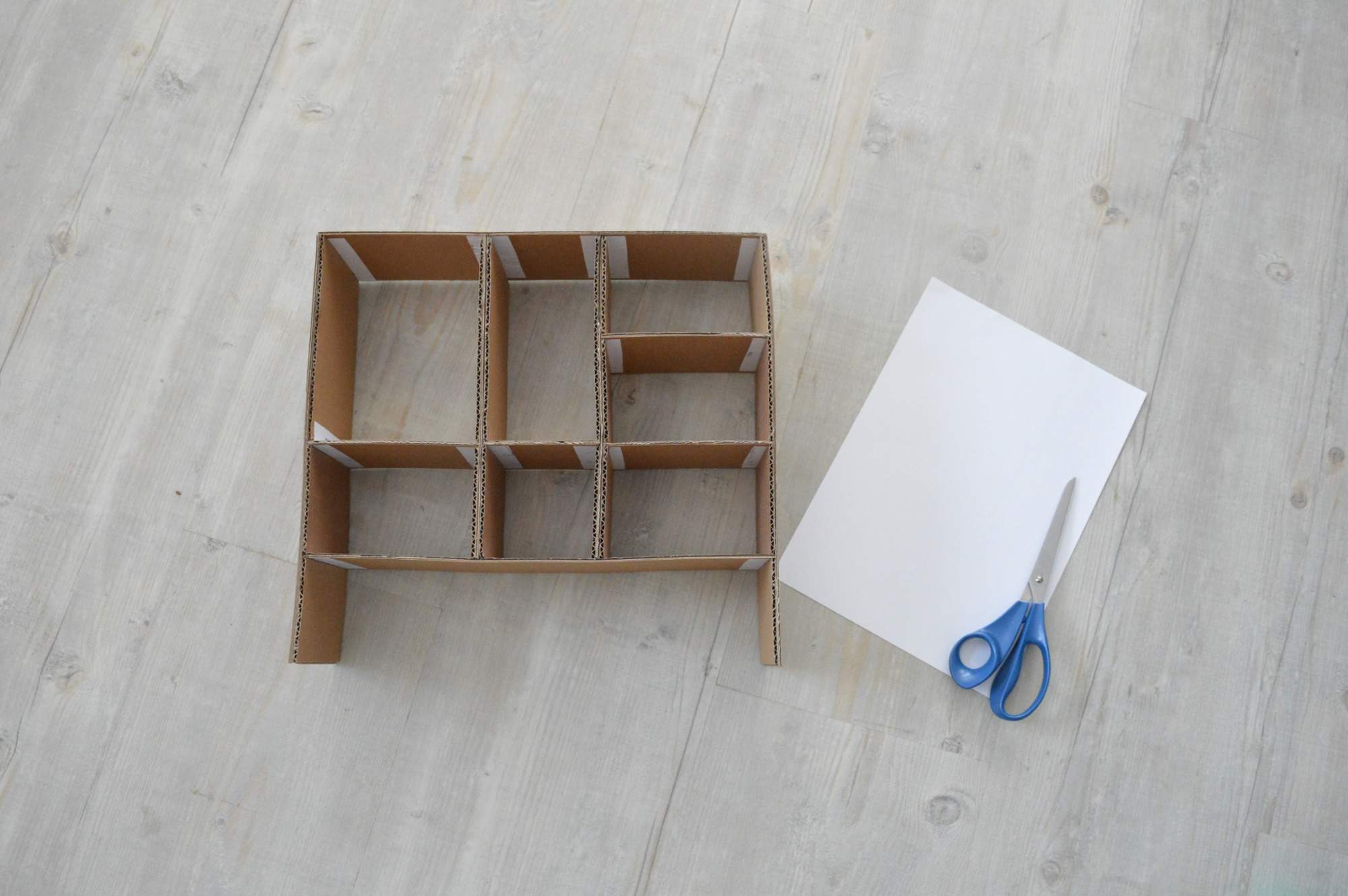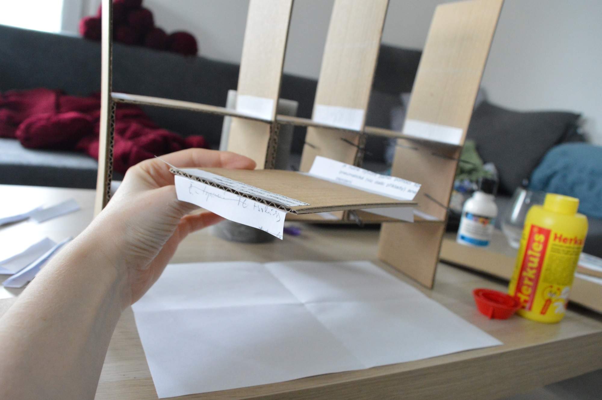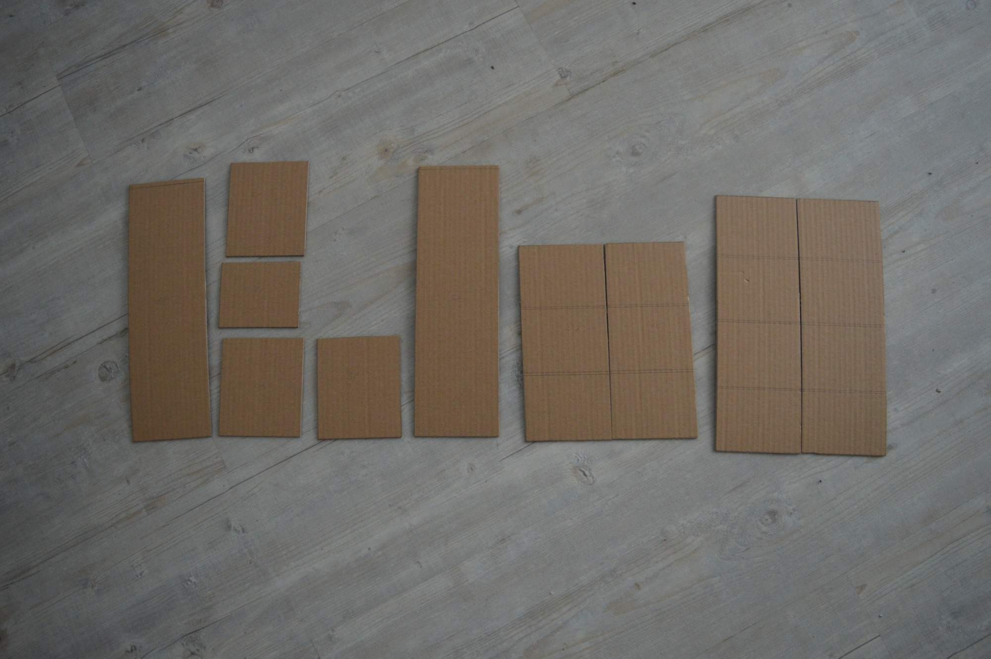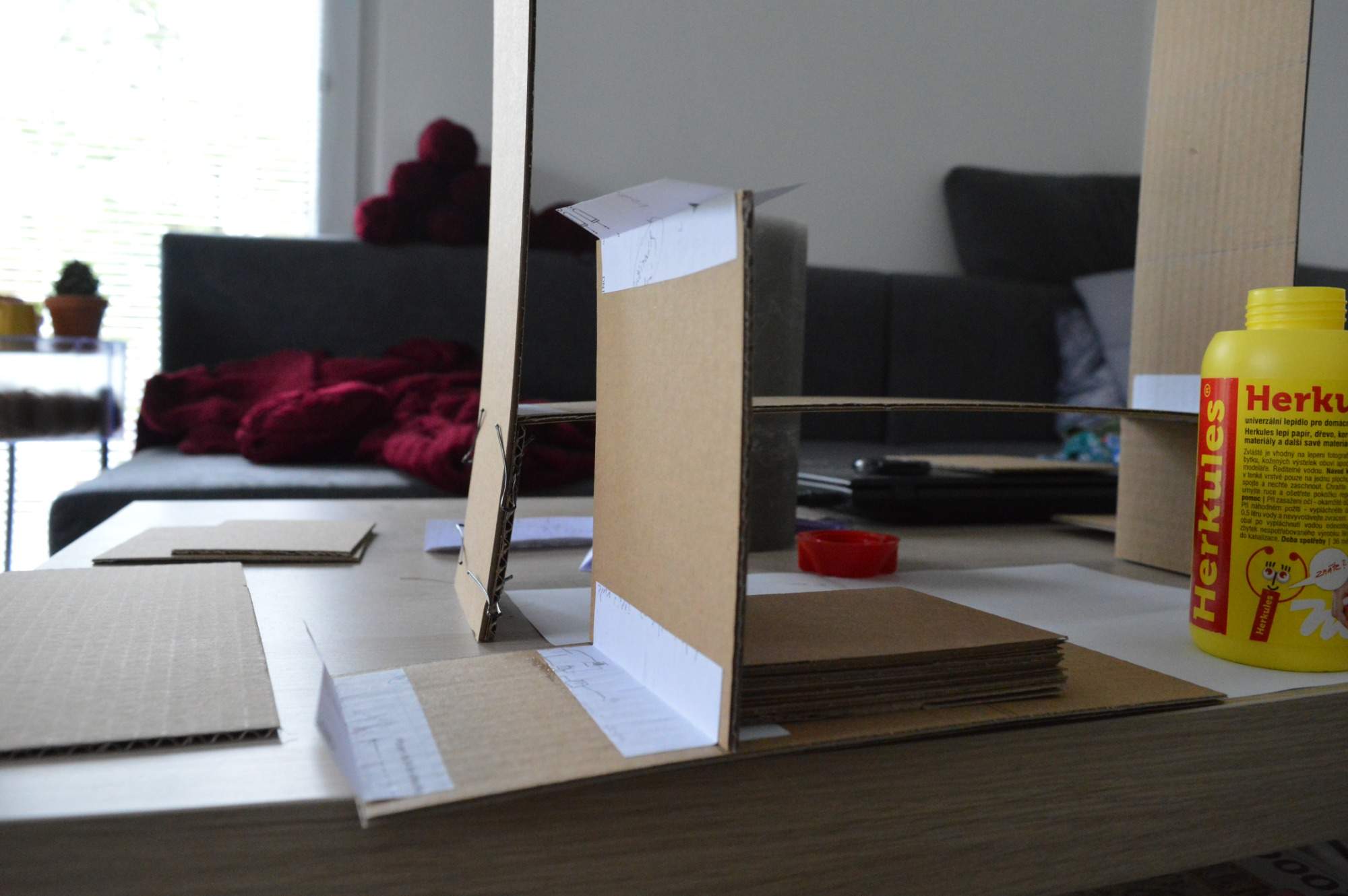 Po vypracování plánu a rozměrů jsem se tedy vrhla do hromady kartonu, co nám zbyl po vybavení bytu v ikee, a dala se do řezání.