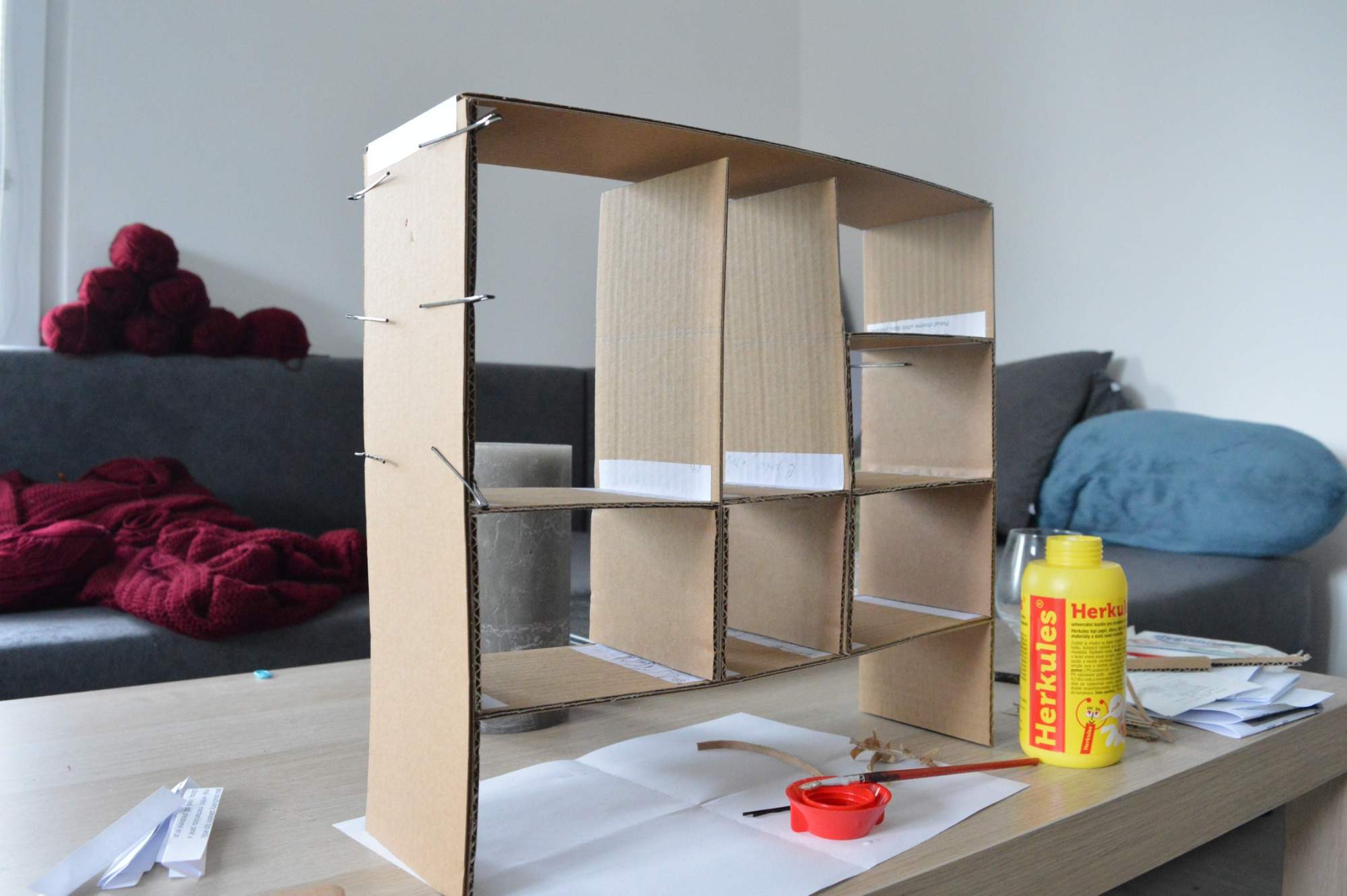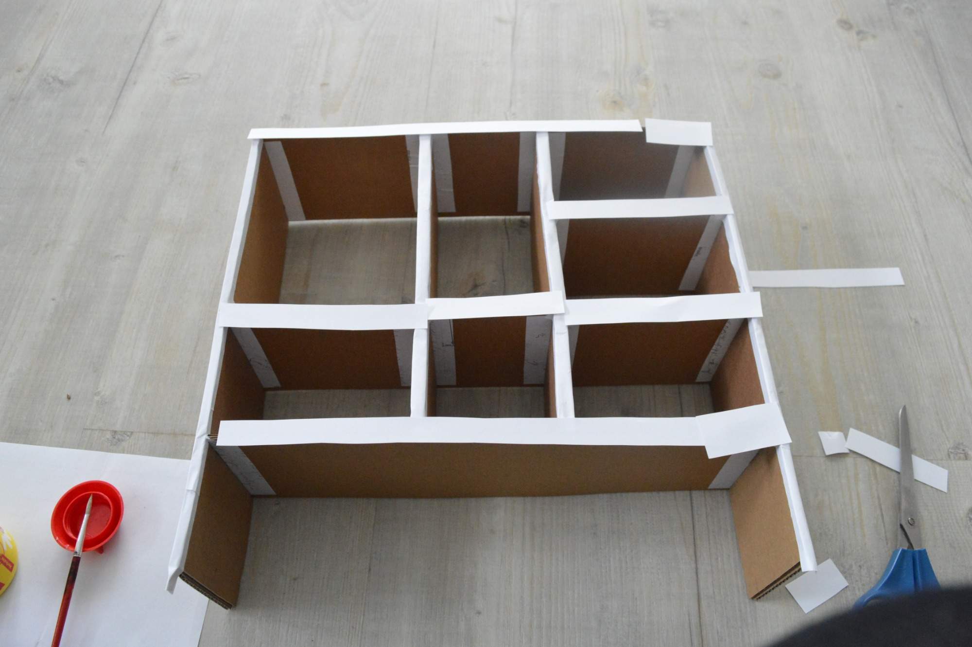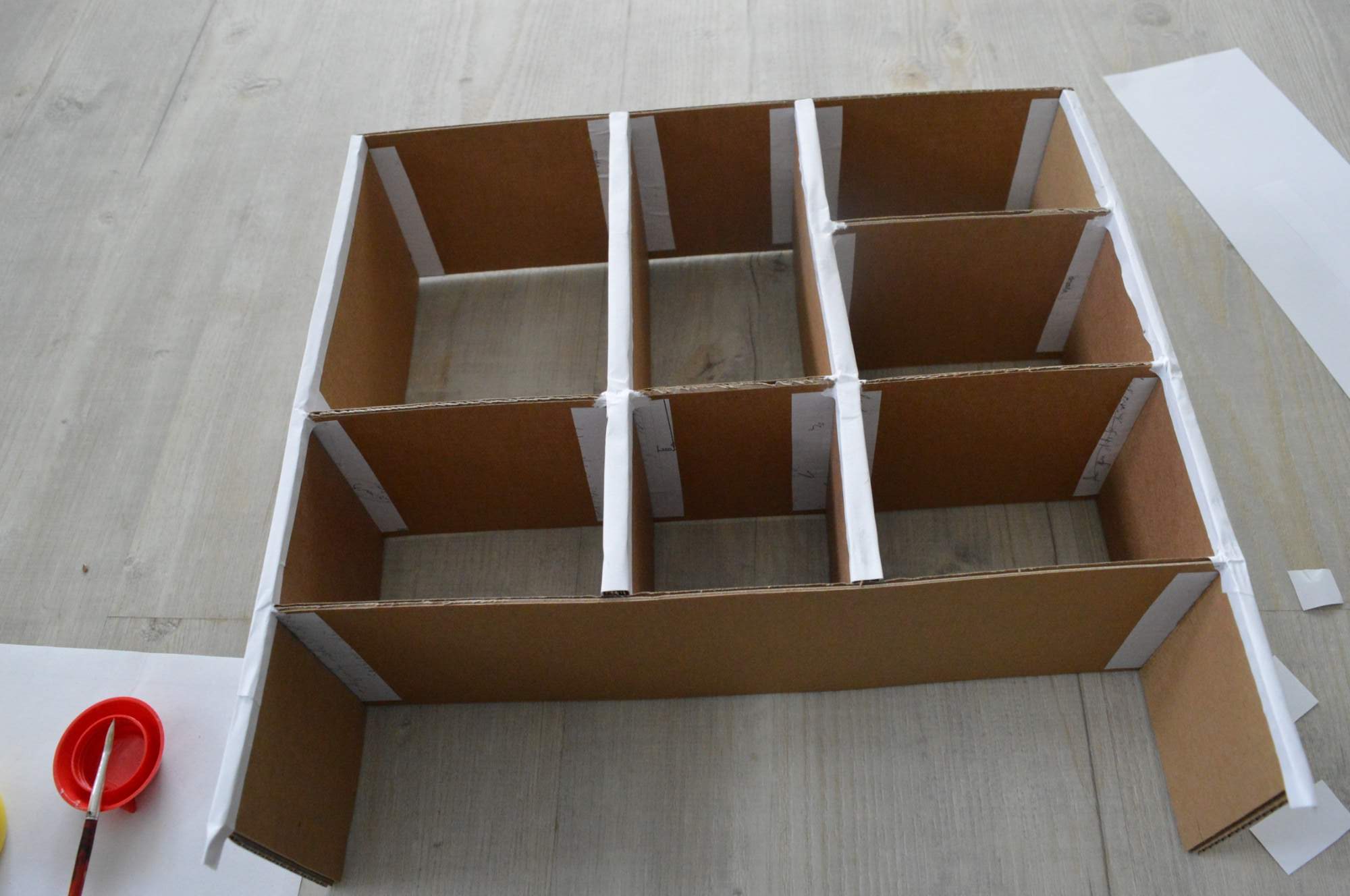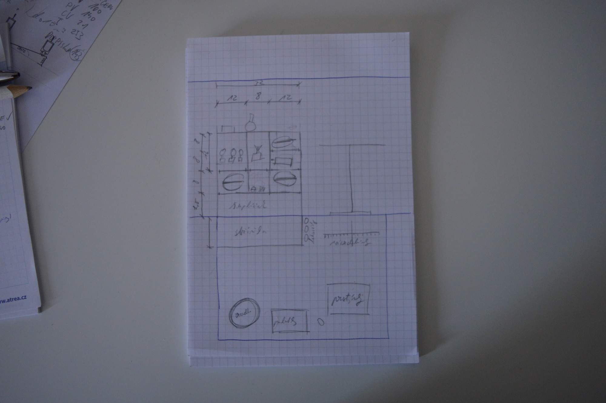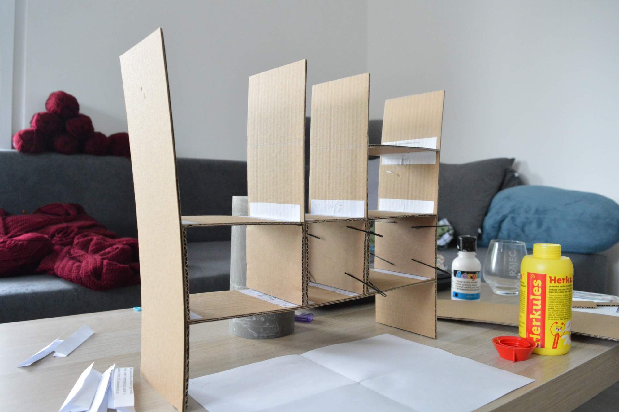 Po vypracování plánu a rozměrů jsem se tedy vrhla do hromady kartonu, co nám zbyl po vybavení bytu v ikee, a dala se do řezání.