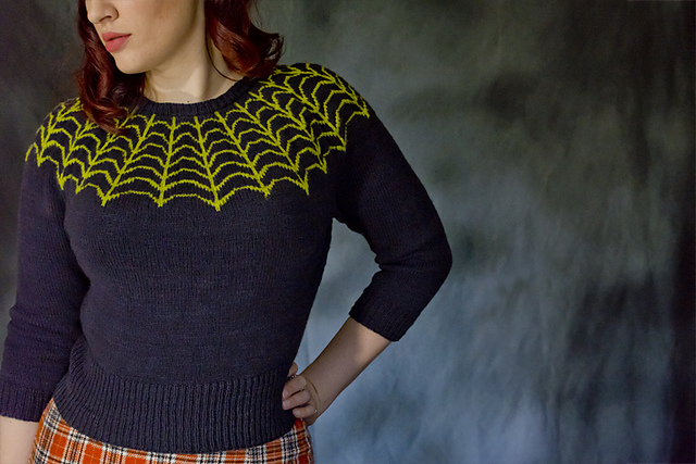 A s tím se pojí i černé kočky, duchové a pavouci. A k pavoukům patří pavučiny. Takže to prostě řeknu. Svetr s pavučinou. Naprosto úžasná věc, na kterou koukám už fakt hodně dlouho. Budu ho letos plíst? Spíš ne. Upletu ho jednou? Doufám. A až na to dojde, plánuju použít návod Arachne od Andi Satterlund.