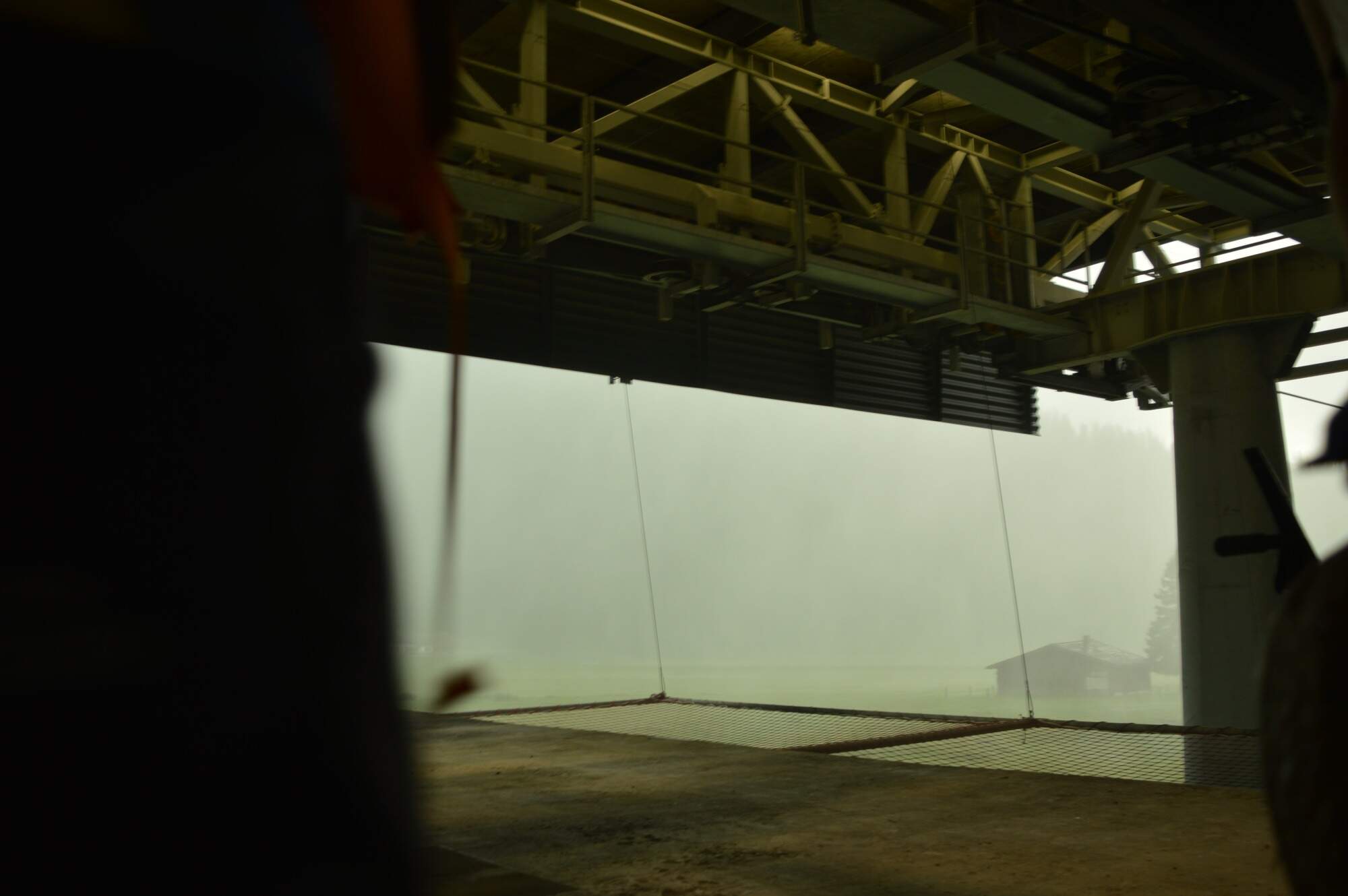 Sestup byl téměř v dráze lanovky a když jsme našli zastávku autobusu, rozhodli jsme se, že čekat se nám nechce. Šli jsme tedy dál. Po nějaké době bahnitého sestupu jsme se opět setkali s lanovkou a i zahlédli stromy, které vedli k jejímu zastavení. Pracovalo se na nich a v dálce byl slyšet vrtulník.